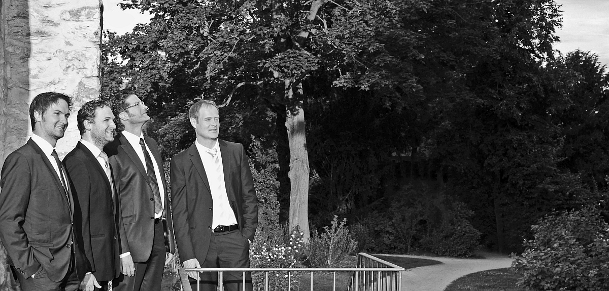 | Biographie Das Spitzwegquartett wurde 1997 von vier Regensburger Domspatzen gegründet. Inspiriert von dem Gemälde "Ständchen im Mondschein" benannten sie sich nach dem Maler und Apotheker Carl Spitzweg (1808-1885). Sie sind dem Gesang auch nach ihrer aktiven Zeit im Domchor treu geblieben und bestreiten nicht nur vielerlei Auftritte, sondern sind im Besonderen für Konzerte gefragt. Sie erarbeiteten sich ein umfangreiches Repertoire klassischer Vokalmusik aller Genres, von gregorianischen Chorälen und geistlichen Werken aller Facetten, über Madrigale, bekannte Weisen, humoristische Stücke und Lieder im Stile der Comedian Harmonists bis zu Jazz und a-cappella Versionen einiger Pop-Songs. Ihr musikalisches Schaffen ist mittlerweile auf zwei CDs dokumentiert. BiographyExperience the very particular and special musical side of Regensburg with the Spitzwegquartett! Four former members of the Regensburg Cathedral Boys Choir – a world famous boys choir, the oldest one in the whole world even, with a tradition of over one thousand years – will delight you with a-cappella music at it´s finest, both classical and modern. Our love for the music made us continue pursuing ensemble singing passionately after graduating from the Regensburg Cathedral Boys Choir’s school. A process of singing in numerous different ensembles finally climaxed in forming the Spitzwegquartett as it is today. Sporting the Regensburg Cathedral Boys Choir’s manifold musical heirloom, the Spitzwegquartett sings sacred music from varying periods, Spirituals, Madrigals, german folk songs, Barbershop songs, humorous works, as well as a Comedian Harmonists style repertoire. And for the festive season, there is an utterly enchanting Christmas program also! |